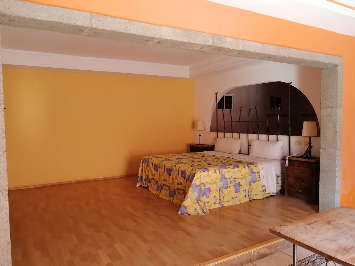 Vienes viajando por carretera con los perros desde hace seis horas y nos hospedamos sin problemas, la cama bien, tiene una mesa con sillas para comer y beber algo, tiene una TV como las de antes pero tiene muchos canales a es coger. El precio por noche $350 está bien, el baño limpio